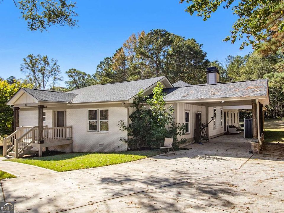 262 Lazenby Rd, Newnan, GA 30263 Nestled on a nearly 0.7-acre private lot, this beautifully remodeled 4-bed, 3-bath ranch boasts an ample area of living space with an open floor plan, hardwood flooring, high ceilings, and a stone fireplace. The chef's kitchen features under-cabinet lighting and a breakfast nook. Retreat to the master suite with a tray ceiling, soaking tub, and separate shower. Outdoors, enjoy a covered parking area, side entrance to the family room, and a deck overlooking the lush grounds. Three-sided brick construction with Hardiplank siding adds curb appeal and durability. Just minutes from shopping, 1-85 access, and historic downtown Newnan - classic charm meets convenience.