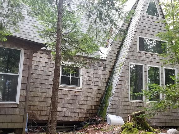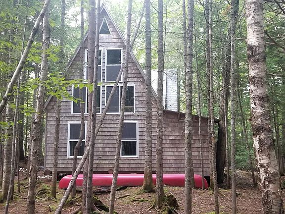 If you are looking for a life sized ''Fairy tale House'' this might just be it. Tucked back in the mossy woods in a classic A Frame style with rustic charm. An open floor plan with sleeping loft and exposed beams. One propane heater, and 2 wood stoves create a cozy setting. This property is off-grid but lit by propane lamps, and an outhouse is just a few feet from the side door. Public access to Little Moxie Pond provides a quiet brook trout fishing spot a short walk away.