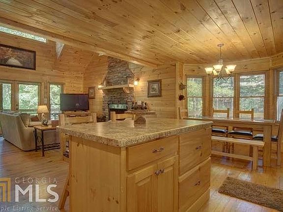 Perfect opportunity to own your very own Mountain cabin in a gated community located minutes from Blue Ridge and the Toccoa River!!! This beautiful cabin ha easy access off paved roads with a gentle laying lot and plenty of parking with room for the kids to play. Spacious great room, dining area, wraparound deck with hot tub and tiled baths close. Beautifully furnished and the furnishings can be negotiated separately. This cabin has excellent rental history!!!