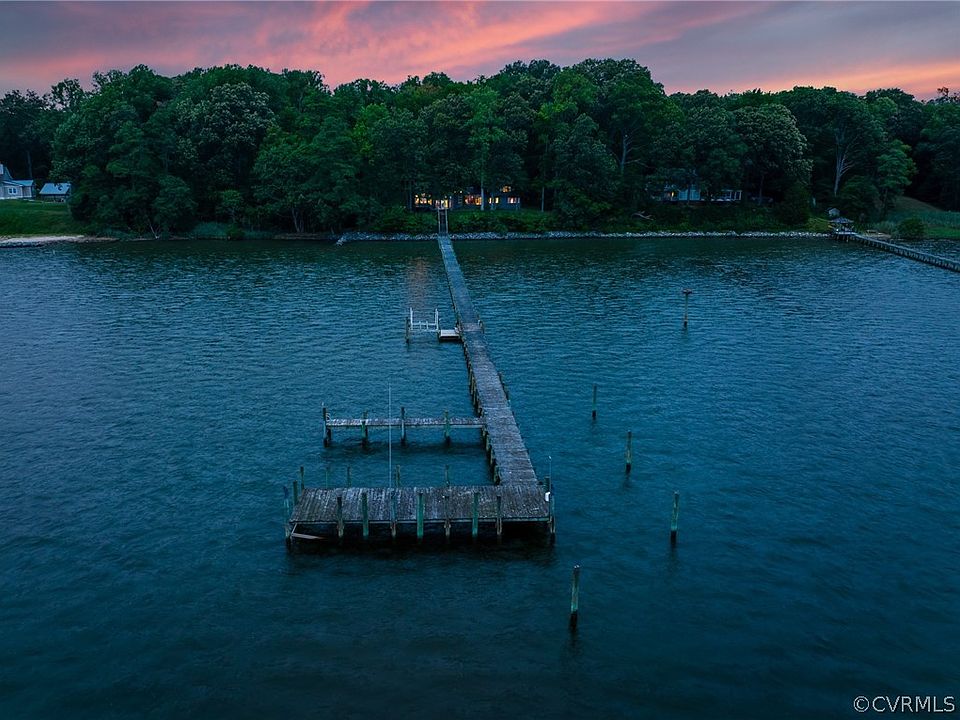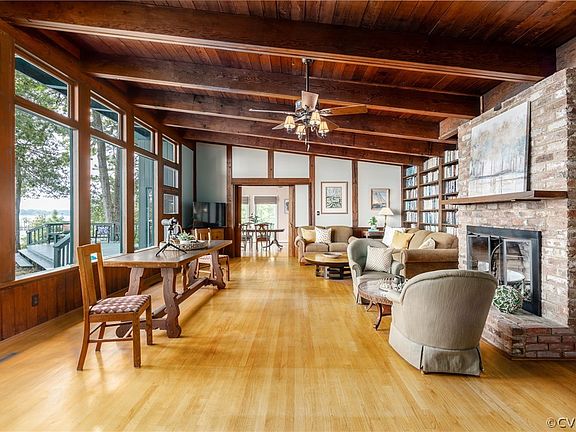 “Ropeyarn” is an idyllic oasis designed around the sweeping Piankatank River view by architect Allan McCullough, whose work includes The Tides Inn and Richmond’s Collegiate School. An addition artfully marries the modern aesthetic, clean lines and open layout with surrounding nature in the home’s 3,793 square feet. Highlights of the 2-acre lot are a deep-water pier (8’ MLW) with electric, water & lift, rip rap, 2-car detached garage & spectacular sunsets. The great room is the heart of the home with multiple seating areas, a raised hearth fireplace & mahogany ceiling beams shipped in by the original owner’s time overseas as a Navy captain. The 2-story guest wing features 2 baths and 3 bedrooms, all with water views. The primary suite boasts 3 closets, deck access, water view and en-suite bath with separate commode, soaking tub, shower & dual vanity. The kitchen with island, wet bar, butler’s pantry & breakfast bar opens to the dining room overlooking the water. There is a billiards room with gas fireplace, office, large laundry room & powder room. Storage abounds in the 1281 SF walkout basement with garage bay, full bath & wine cellar. Enjoy the sweet breeze on the wraparound deck!