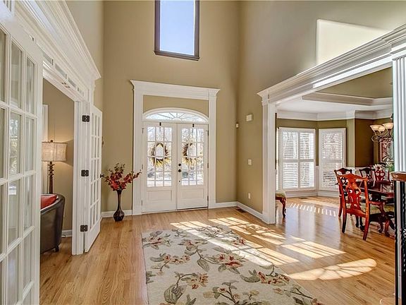 - Interior: 2-Story Foyer, Entrance Foyer, Trey Ceilings, Wall/Wall Carpet, Bookcases, His & Her Closets