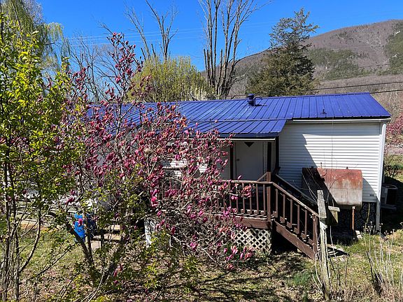Adorable home with covered front porch to enjoy the mountain views & private covered deck to enjoy all the beautiful blooming trees & flowers. Well maintained home with metal roof, central air & furnace only 3 years old. Split bedroom design offers a nice size master bedroom & updated master bath. Two more bedrooms & another updated hall bath. Huge kitchen with lots of cabinets & appliances. Large living room with furniture included. All bedrooms have nice walk-in closets. Most of home has been updated including flooring, wood floors, updated baths; Sunroom added off the deck is perfect for your plants or soaking up the sun. Carport, storage building & plenty of flowering shrubbery & fruit trees. Must see to appreciate all this home has to offer. Great location & in walking distance