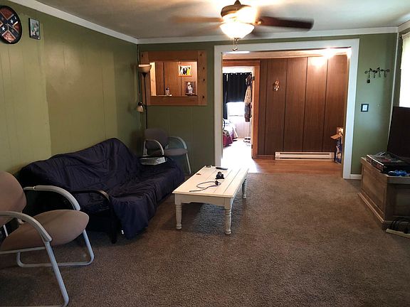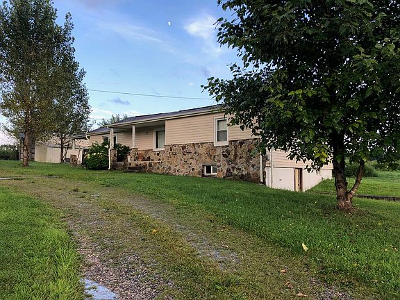 Affordable Country Living on 3 rolling acres. This home features 3 good sized bedrooms, spacious kitchen, dinning room and family room. The bathroom is large with a corner tub/shower combo. There is plenty of storage in the unfinished walkout basement or the 2 additional buildings on the property. The large pole shed could be used for an RV or any other toys. The home has a money saving outdoor wood furnace duct into the house to keep you warm and toasty in the winter (there are also newer electric baseboard heaters installed) This home has great potential, Bring your money and imagination to this lovely property.