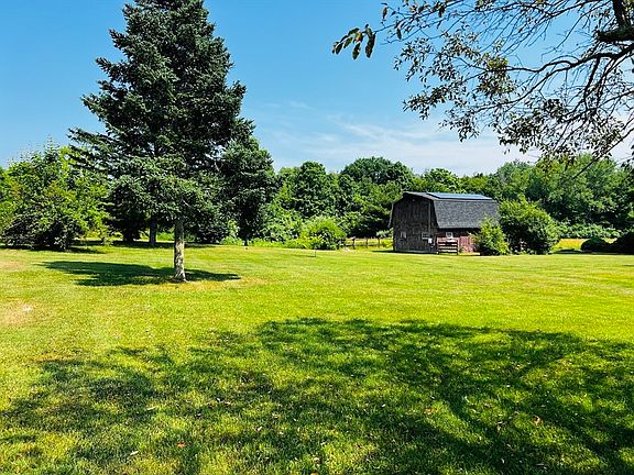 A picture perfect quiet country setting for this 3-4 bdrm, 2 full bath Cape Style home set on an acre of beautiful flat land! Offering a unique custom built 20'x30' 2-story barn w/double doors, running water, electricity & more - there are so many possibilities for the tradesman or hobbiest, as the 2nd story could also be a great workshop or studio! The home has been recently updated with a newer roof (barn & house 2021), 2 full bath remodels (2024), all new flooring and a kitchen w/cherry cabinets & SS appliances. Completing the 1st living level is a living rm w/a fieldstone fireplace, a remodeled full bath w/walk in shower, a bdrm w/custom built-ins, and an additional den/bdrm that was recently converted to a laundry rm. The 2nd floor offers a large primary bdrm w/ample closets, a second fully remodeled bath & another good size bdrm. Enjoy energy savings w/solar panels (installed 2017) and a pellet stove. Schedule an appt today before this unique property w/tons of potential is GONE!