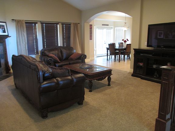 Fantastic custom home nestled in the desirable Wild Horse Springs neighborhood! This home sits on a quiet street with little traffic and has both Sand springs elementary and Legacy Jr High, highly rated schools just around the corner. The home sits on .33 of an acre, with fruit trees, a nice large back yard, natural gas bbq with covered patio and and RV parking! It has a brick arched covered front porch, the entrance has 13' ceilings and plantation shutters. The living room and bedrooms have vaulted and coffered ceilings on the main floor. The house has been freshly painted and the kitchen has a new gas range and microwave. It features dimmer lighting in the living, kitchen and master bedroom, with halo lighting. The master sweet includes his and her sinks, a jetted tub and separate shower. The kitchen has solid surface countertops, with custom cabinets and a walk in pantry. There are two custom stone fireplaces, extra large staircase, a large home theatre/ game room completely wired with projector hook ups, daylight basement with tall ceilings and nice roomy layout.