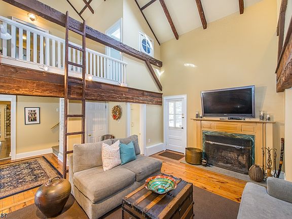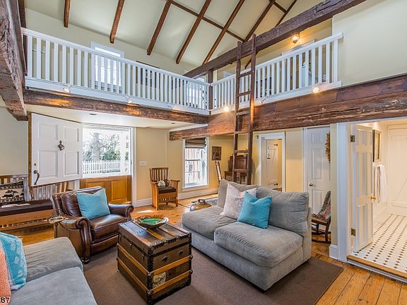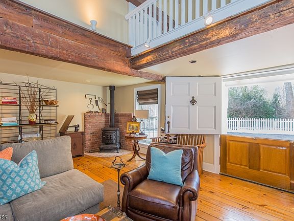 Architectural interest abounds throughout this 5 bd, 3 bth lovingly converted barn residence. Experience the warmth and charm of the rich patina on the open trusses crisscrossing the great room, the wide planked pine floors, wood burning fireplace, two wood stoves, open kitchen with keeping room and spacious master ensuite. The converted floor plan creates an easy flow through the oversized rooms with natural light accenting the ample space, this home invites one at every turn. Enjoy the privacy of a property that sits back off the road, relax on the 3 season porch or on the deck overlooking the expansive rear yard + basketball court. Perfectly located - 1 min to I-287, 9 min to Morristown Train Station + just 2 min to the heart of Basking Ridge. Come experience this beauty for yourself!