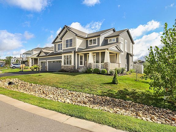 WOW! Better than new! Come see this fabulous home in sought after Inspiration! This former model has many amazing features such as hand scraped wood flooring, a chefs kitchen with butlers pantry that leads to formal dining, a two story living room with soaring windows, three car garage, roughed in basement for instant equity, four bedrooms and a loft on sleeping level! Basement is ready for sheetrock. You will love the serene stamped concrete patio and the trail system in the neighborhood surrounded by protective prairie land. All located within minutes to Stillwater's shopping and dining and St Croix Prep School.