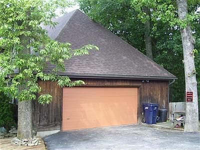 With the look of a Colorado lodge, this lovely home is on 3/4 of an acre with a wooded back yard and a wonderful covered deck for summertime enjoyment. There is a spacious living room with laminate flooring that was installed in February 2013. The main level bath was redone in April 2013. The pretty kitchen has lots of counter space and an island with breakfast bar. Downstairs is a huge family room with wet bar, gas fireplace (the gas has never been hooked up) and room for a pool table. The basement walks out onto a walkway on the north side of the house. Upstairs is an office and sitting area, bedroom, bath, huge walk in closet and walk in floored attic storage. There is a 2 car attached garage and a 2 car detached garage.