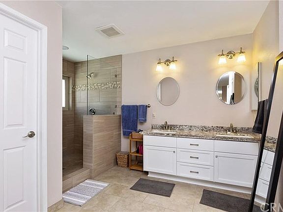 - A welcoming entry opens up to the light and airy, spacious, formal living and dining rooms. - Over 2,100 SF of living space, it features 2 bedrooms and full bath downstairs, an updated kitchen with beautiful cabinetry including, self closing drawers and cabinets. - Upstairs you will find the master suite with a lovely updated bath, 2 additional nicely sized bedrooms, another pristine updated bath and ample linen storage in the hall. - The oversized, attached 3 car garage has lots of great storage space and still provides plenty of room for the cars. Minutes from UCR, schools, shopping and freeways. - includes fridge. In unit washer/dryer.