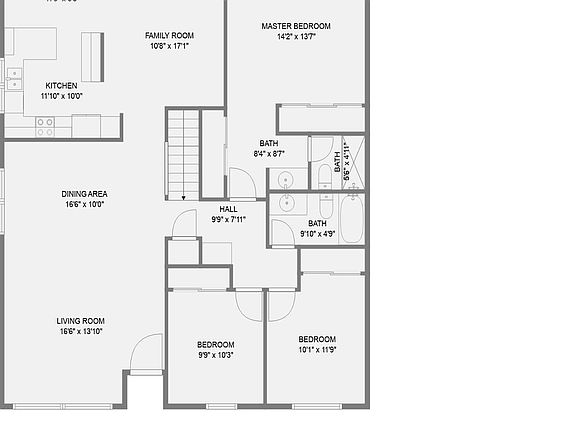 - Description: Hardwood Flooring, 11ft Vaulted Ceiling