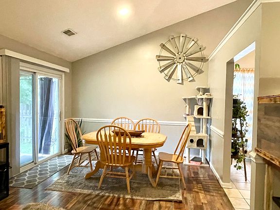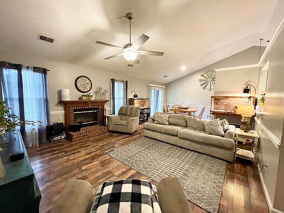 One story home with an open floor plan and back yard paradise. As soon as you walk in the front door you are greeted by vaulted ceilings that span from the foyer to through the great room, dining room, breakfast room and the kitchen. New Laminate wood floors in the great room and hallway plus the Kitchen, breakfast room and bathrooms have ceramic tile floors. The fireplace that will keep you warm during cooler nights. Master bathroom boasts subway tiles and black hardware. Grab a drink and relax on the covered deck or take a refreshing dip in your pool. (new pump & filter this year). HVAC 2021, water heater 2020, garage door 2022, Roof 2019. You can walk to restaurants, shopping & school. The rec center has a full gym (adults $60/yr.), movie and symphony under the stars & more. This is Ho