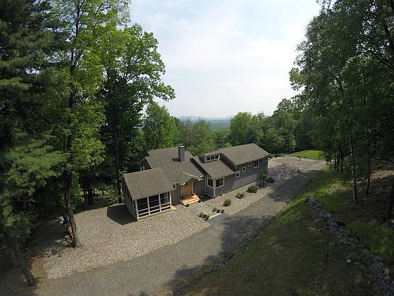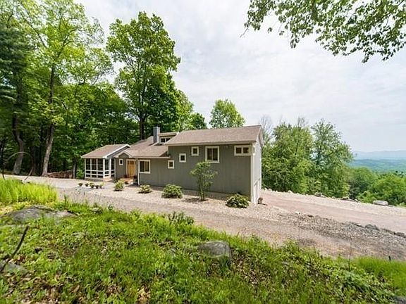 On top of the world and simply stunning! Exceptional, multi-level, residence situated on 127 acres with a long private driveway, stone walls, spectacular views, & pastures near Northampton/Amherst on Horse Mountain. This energy efficient home provides custom craftsmanship, contemporary elegance, with designer maple floors/cabinetry, floor to ceiling windows, 16' ceiling. Venetian glass lighting accentuates the vaulted ceilings. Custom mill-work throughout. Luxurious and airy living room, kitchen with rare Brazilian granite and ss appliances. Spacious master suite with marble tile walk-in shower & soaking tub. Custom walk through closet with pocket doors, Green friendly marmoleum flooring, Avonite dual vanity counter top. Fantastic screened-in porch to enjoy and spend time in. Horse barn and riding ring with 100 bale hayloft, electricity, Nelson waters, extensive trails, acreage for horses to graze freely. You must see this home and what it has to offer!