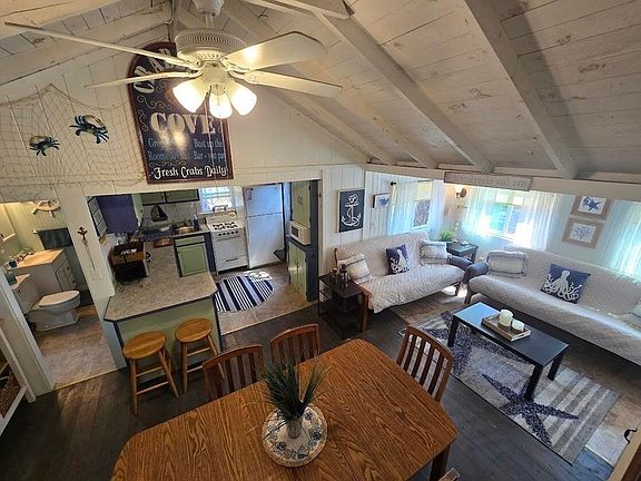 Cute and spacious cottage in popular Salt Air Village. Inviting open floor plan with a full bedroom, bonus room, and loft area-plenty of room for summer living! There is a nice outdoor door living area with gazebo. Brand new roof and many improvements. Salt Air Village offers deeded beach rights, ball field, volleyball, fishing pond, and winding country lanes. Generations of families have made memories and friendships here. Rentals and pets allowed with some restrictions. Monthly charge to cover special assessment for electric upgrade ($18).