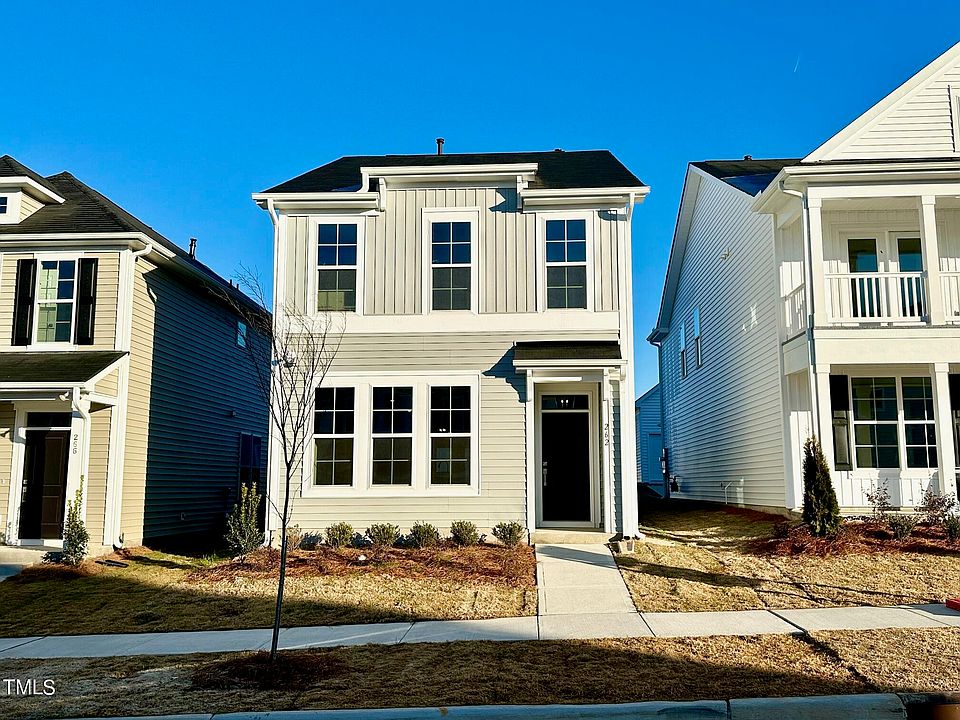 Style for style? Rise above the mundane and come discover Convenience and Value at the intersection of Highways 70 and 42 in the heart of all things Clayton! Charming Charleston-inspired architecture brings our streetscapes alive! Inside revel in an open concept layout. Chef's island Kitchen boasts a pantry worthy of its own ZIP code! Pocket office off the Kitchen - means you can go from morning coffee to ZOOM meeting in 2 seconds flat! Unleash your creativity in the courtyard style backyard with detached DOUBLE GARAGE! It's an easy stroll to the COMMON GREEN and all the planned neighborhood FUN (pool, playground and pickleball)! Best part? This is an A+ LOCATION - shopping, schools, dining, employers and commuting arteries all at your fingertips! Come find STYLE for less today!