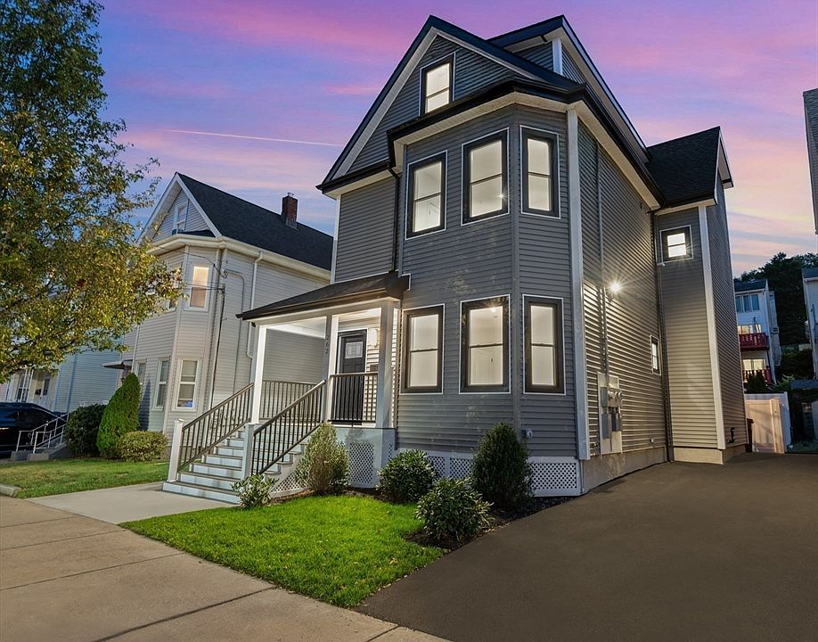 Rare gut renovated 2 family in the heart of Revere, offering luxury & income potential. With over 600 sqft of patio and outdoor deck space & a large backyard. This property is ideal for both owner occupants & investors. Unit 1 features 2 bedrooms, modern kitchen w/ quartz countertops, stainless steel appliances, custom closets & a stylish bath w/ Italian terrazzo tile. Spanning 3 levels, Unit 2 offers 3 bedrooms & 3 full baths, highlighted by an open kitchen w/ a quartz waterfall peninsula, elegant wainscoting & a primary bedroom w/ en suite bath. All bedrooms feature custom closets. Spa like baths include heated LED mirrors, travertine & terrazzo finishes. Recessed lighting & premium finishes throughout, new systems & separate utilities ensure efficiency & low maintenance living. Outside enjoy multiple decks, a paver patio, fenced yard & a new driveway w/ 2 off street parking. Steps to MBTA Bus 110 w/ access to Blue & Orange Lines, Broadway & Revere Beach!