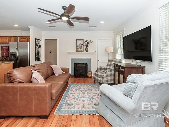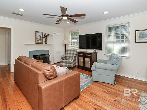 Located in the Heart of Springhill & about half way between Spring Hill College & University of South Alabama. Directly across the street from Lavretta Park with playground & art center. Pickleball courts to be finished by December '24. Underground utilities in process. Open concept home with Living Room/Dining Room with woodburning stove and Kitchen. Well appointed Kitchen, open to Family Room, Breakfast Bar, large counter, Stainless Appliances: Dishwasher=2018, Microwave, gas Range, Refrigerator=2017, custom cabinets with pantry. Split bedroom plan, Primary Bedroom has walk-in closet and updated bath with two sinks. Flex room could be office, sitting room or dining room. Extra large laundry room (11x11) off kitchen and opens to back yard. Front yard has parking area for 3 cars. Back yard is spacious with 6' privacy fence - great place to play & perfect for pets. Large deck has decorative lights. Features & Updates include: Roof=2017; Refinished hardwood floors=2020;extra insulation=2022;6' privacy fence redone=2024;shed (10x8) added 2019;lights added to deck=2024;bathroom redone=2020;fiberglass backdoor=2020. Washer/dryer=2022 are negotiable. ***Listing Broker makes no representation to accuracy of square footage. Buyer to verify. Any/All updates per seller(s).*** Buyer to verify all information during due diligence.