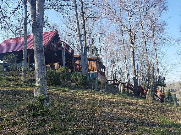 This lakefront log cabin is located on Watts Bar lake TN, located just off of the main channel in a storm protected deep water cove. During peak water levels the cove ranges up to 24' deep and maintains a depth of at least 10' in front of our dock during the low water months. Lake level lowers about 3-5 feet in the winter, by comparison Norris lake fluctuates about 20 feet. Watts Bar Lake, is an enormous navigable body of water leading to the Gulf of Mexico with a maximum depth of about 100' with 770 miles of shoreline. The main log cabin built in 1981, has 2 bedrooms, 1.5 baths, with a wood burning stove and a big loft with 2 more beds. Added later in 1995 to the cabin is a sun room with fireplace, washer/dryer room and back porch overlooking the lake. The house has 1764 SF. Lot size is about 1 acre with 200' of shoreline. City water, septic system. and heating/cooling with a heat pump The covered carport (20'x30') with extra room on top has lots of storage space or can be converted into living quarters. It has electrical power and possible water hookup for a toilet. The garage is a separate 25’x22’ building. The current dock was constructed in2010. It has a dock house, big covered deck with wood stairs and aluminum ladder into water. The dock has 3 bays with 3 electric boat lifts. There is one double bay with a partial floating dock suitable for very large boats. What is unique is that the partial floating dock allows easy winter (striper & crappie fishing!) boat access. This is one of the few docks that has very deep water all year round. The entire dock contains appx 1700 sf of covered space. It is one of the largest docks on the lake, docks are now limited to a maximum of 1000 sf. Both the front and rear of the the have year round water.This is arguably the best dock on the lake, built for fishing, swimming, hanging out and just having fun. Metal roofs are on the house,carport room, garage and dock. A paved parking area is much bigger than most of the lake homes, suitable for many boats/cars. The house was purchased in 2008 for $325K, since then we have done more than $80k of improvements including expanding the single dock into a 3 bay covered dock with 8’x32’ deck and adding metal roofs to the carport and garage. We used the house about 10 times a year mostly for fishing. Stripers, bass, crappie and catfish are abundant. We have caught 40 lb catfish off the dock. In 1995 the previous owner built the added back porch, the sun room with fireplace and the washer/dryer room and the floors are not 100% level. The house is being sold as is. All house appliances and furniture (except 1 wood bench seat) are included with the sale. Thank You and please call Frank at 937-985 -2005, leave a message and I will return the call.