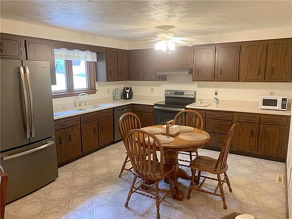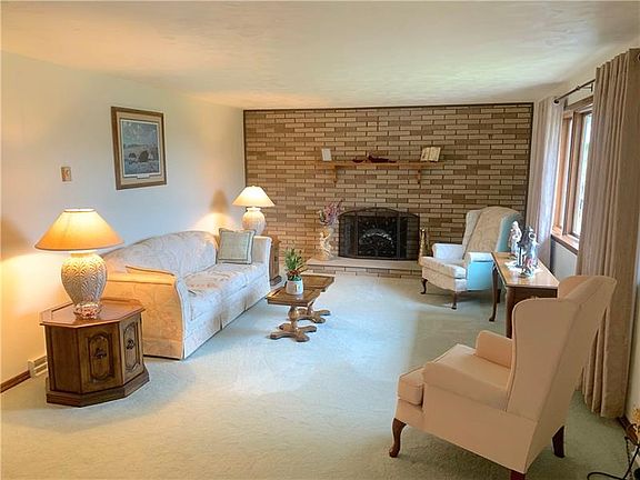 Meticulously maintained one owner Ranch situated on one acre lot features very spacious room sizes, updated Pella windows with built-in blinds, Living Room with updated entrance door and decorative brick fireplace, Eat-in Kitchen with solid surface counters, new stainless stove and Refrigerator, open to Dining Room with Pella slider to 13x40 patio, Bedrooms with updated Laminated floors and Master with double closets, main bath with ceramic tile floors and walls, huge finished Family Room with gas fireplace and bar, updated full bath, large equipped Laundry Room and new HVAC system, convenient work or hobby shop. Extra closet and storage space, over-sized attached finished garage, 20x24 storage building. Extra parking on paved double driveway. Additional electric radiant heat. Last house on quiet no outlet street.