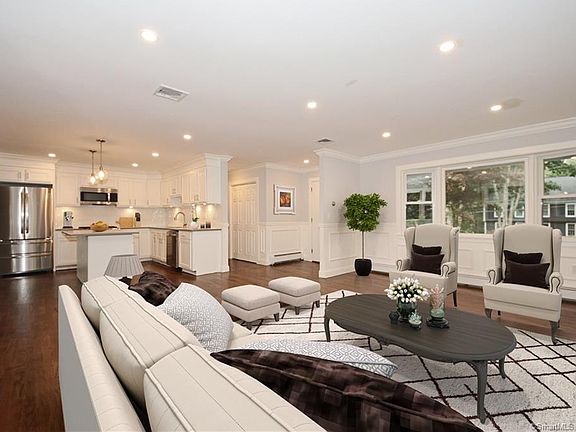 Located on a quiet street just steps from the Elementary School, this home has been fully renovated. Walking through the front door, you are welcomed into an open concept living area. The sun drenched living room boasts a fireplace surrounded by custom built-ins. The kitchen with quartz countertops and stainless appliance is sure to please any chef and is open to the living and dining rooms. The dining room with vaulted ceilings is surrounded by walls of windows looking out onto the tranquil rear yard. Rounding out the main level is a laundry room with ample space for storage or an office area, a master bedroom with full bath, two other bedrooms and a hall bath. The lower level has a recreation room, family room, second laundry and a full bath making it an ideal space for a possible in-law suite. Move right in and enjoy!