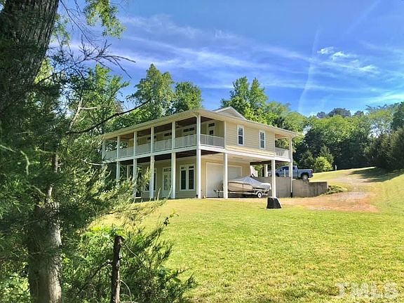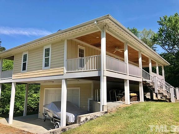 Unique property and opportunity! Owner built this as detached garage (and apartment)... but never built his house. Septic is for 4 bedrooms but detached garage has 1 bedroom and a bunk room on main level. 2 bathrooms (One bathroom upstairs. One in lower garage area) 3.37 acres! PORCHES galore! There is no boathouse. The lake authority has given permission for 30 ft wide boathouse. Garage is adorable! Beadboard ceilings! Hardwood floors! Solid wood doors! Furniture stays! Boat stays! Golf cart stays!