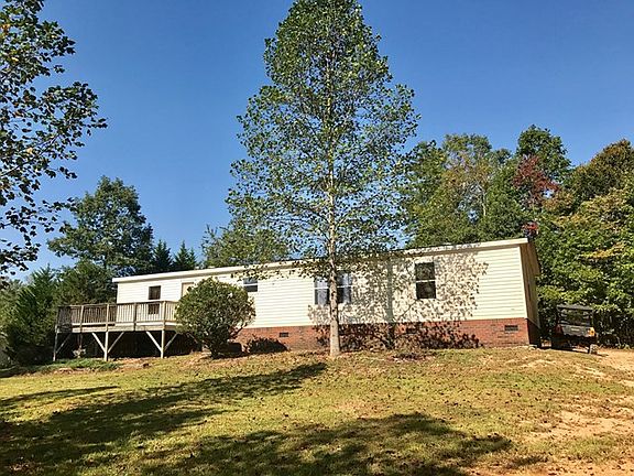 Private setting on 1.2 wooded acres with trails. Few minutes drive to both the Wilkesboros and Elkin. Screened front porch, back deck. Split bedroom layout & all bedrooms are roomy & have walk-in closets. L-shaped bar with cabinets below (between kitchen & living room) can be removed (bolted to floor & was added in orig mobile home setup). Large L-shaped living area with dining area in the L. Current owner uses as office w/table in kitchen. Laundry off kitchen. Security system. Storage building.