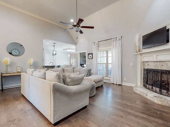 This beautiful all-brick home on a cul-de-sac, in a quiet neighborhood is a 10!! Open floor plan featuring lovely entry foyer with wainscotting opens to living room with vaulted ceilings & gas fireplace with mantle. Kitchen features granite, electric stainless appliances and new dishwasher. Primary bedroom has trey ceilings with hardwood accents. Open walk-in closet, full bath with double sink and granite countertop. All bedrooms are downstairs. Oversized bonus room with high ceilings, bar/flex space and half bath. Sunroom/Office with large picture windows, opens to the deck. Backyard has underground fence. Three bay garage has new 220 volt outlet, currently being used as a Tesla charger. There are 2 boat launches nearby and ATV trails.