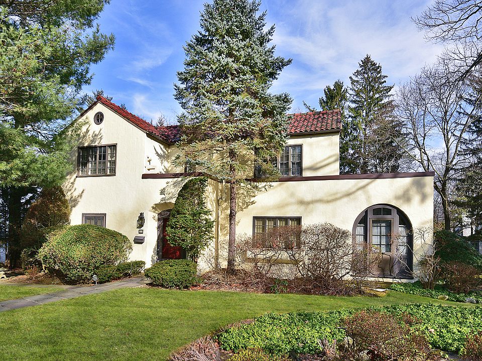 This spectacular Mediterranean style Colonial features large gracious rooms throughout with an open flow for both entertaining and daily living. The first floor boasts a dramatic LR with lovely fireplace, an over-sized Dining Room, a Great Room with skylite, beamed ceiling and access to rear deck, a charming Solarium/Sunroom, an updated Kitchen with separate Breakfast Room and also offers a flexible floor plan with large den/office/4th BR for use as a guest or professional suite. The second floor features a sun-drenched Master BR with ensuite bath and door to roof top terrace & 2 addt'l large BRS/Bath. It is situated on an extraordinary and rare 1/3 acre, affording both unique privacy and loads of space for outdoor enjoyment. This charming home is just a short stroll to the Murray Avenue School and an easy walk to Metro North, Larchmont Farmer's Market and Village shopping and dining. Loaded with unique architectural details, this one-of-a kind opportunity is a MUST SEE!