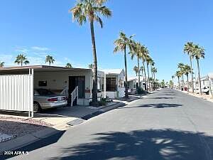 INVESTORS & HANDY HOMEOWNERS, don't miss out on this diamond in the rough! This CHARMING fixer-upper offers endless possibilities! Take advantage of this AMAZING OPPORTUNITY to add value & personalize this property to your liking! NICELY SITUATED NORTH FACING W/ STUNNING SUPERSTITION MOUNTAIN VIEWS & FABULOUS RESORT LOCATION, just a short walk to The CLUBHOUSE! SPACIOUS CARPORT offers PLENTY OF ROOM FOR PARKING & OUTDOOR PATIO FURNITURE to RELAX & ENJOY THE BEAUTIFUL AZ WEATHER. 5th WALL SLIDING DOOR adds extra privacy to back patio. NICE SIZABLE STORAGE SHED W/ tons of space to store all your extras! STEP inside to this ROOMY OPEN CONCEPT FLOOR-PLAN. SIZABLE front living space w/ open kitchen, FULL SIZE PROPANE STOVE & ample counter space for all your cooking needs. DECORATIVE kitchen backsplash adds a nice touch! TONS of drawers & cabinets. TUB/SHOWER combo in this one! LARGE hall closet adds more storage space or use as a pantry! EXPANISVE bedroom w/ DOUBLE MIRRORED CLOSETS, ABOVE BED CABINETS & another sizable closet with shelving! WAIT UNTIL YOU SEE THE GRAND BACK PATIO perfect for more lounging area & BBQING up your favorites. TAKE ADVANTAGE of the AFFORDABLE PRICE & MAKE THIS HOUSE A HOME THAT YOU'LL BE PROUD OF! COME TAKE A LOOK! OWN THE LAND...OWN THE FUN IN THIS DESIRABLE 55+RESORT! TONS OF ACTIVITIES & FUN AWAITS YOU! DON'T LET THIS FANTASTIC BUY GET AWAY FROM YOU!
