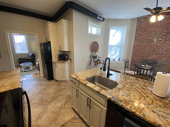This 2nd floor apartment features a private entrance, full sized laundry in the unit, tall ceilings with ceiling fans, exposed brick, large closets, a private deck, and storage in the basement. The custom kitchen looks out into the living room and features Barbados sand granite, a dishwasher, built in microwave, high btu glass top stove, and beautiful cream colored cabinets with a mahogany accent glaze. The ceramic bathroom has double sinks and a full size tub. Landlord pays water, sewage, and trash. Tenants pay very reasonable electric. There is a high efficiency electric furnace, central AC, and each apartment has their own hot water tank. This 8 unit apartment building on the border of Bloomfield and Friendship was totally gutted and rebuilt in 2019. All of the plumbing, wiring, insulation, windows, roofing, decking, etc. are new. One off street parking space per apartment is included. All our properties are pet friendly for friendly pets with a two-animal maximum. There are no breed or weight restrictions. We require proof of rabies vaccinations (and licenses for dogs), but we do not charge additional rent or fees for animals. Smoking is not permitted in any of our properties.