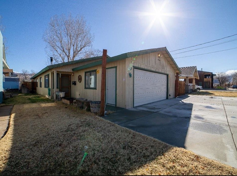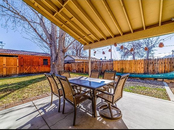 Come view this charming one level home with a large fully fenced backyard! The highly desired backyard features a covered patio, a large shade tree, a long green canoe used for a flower bed, grass area and a three unit storage shed! It truly feels like an extension of the home and is perfect for outside entertaining! This home features 3 bedrooms, 2 baths, a 2 car attached garage, a free standing wood burning stove in the living room, dual paned windows, a swamp cooler and split air units! The laundry area is in the garage which current owners use a family room. Full RV hookups! Call today for an appointment to see this awesome home!