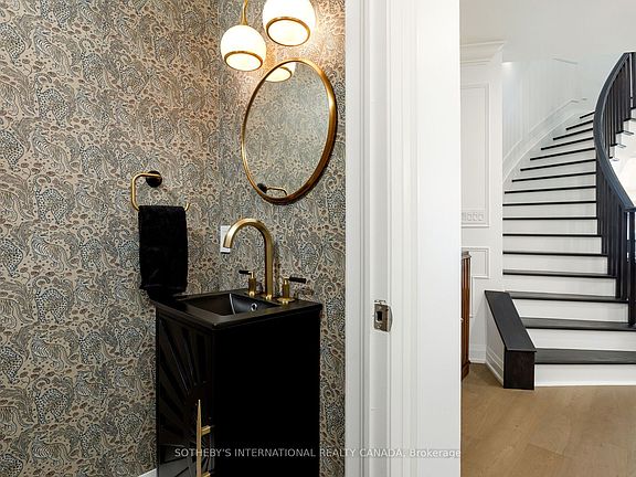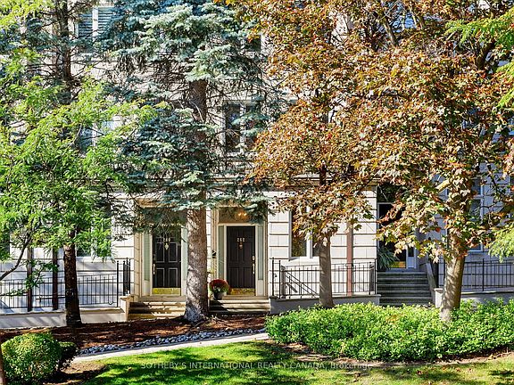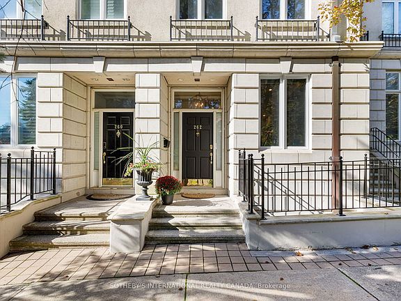 Newly rebuilt (2025, approx 3438 finished interior) iconic townhome with spectacular kitchen, rare two storey primary bedroom and 2 car garage at foot of Casa Loma. Where Lower Forest Hill and the Annex meet, one of Toronto's most iconic Georgian-Inspired Limestone clad townhomes has a new contemporary interior. Fronting on Spadina Rd lush Parkette, the living room overlooks the 11' foyer, has wide oak wooden flooring, crown moulding and bar nook to compliment the adjoining dining room with judges panelling. A sleek art-deco powder room and classic curved staircase enhance this design savvy entertainers' home. Kitchen features premium quartz counters, slab backsplashes and 10' waterfall dining island with induction cooktop, premium appliances, finely crafted cabinetry, two pantries and full-width glass sliding doors to terrace. 2nd floor bedroom with walk-in, adjacent 3-pc bath, spacious family room (22 x 15) with two custom media stations, 60" electric fireplace, and built-in art recess. Rare primary bedroom with 16' sloped ceiling, skylights, styled with white judges panelled walls, light oak floors, striking dark stained staircase railings, treads, and white risers to loft lounge/gym/ office options and roof terrace. Two closets, elegant 5-pc ensuite with glass shower, double vanity, quartz counters, marble basket weave flooring, golden hardware. Third bedroom and ensuite add versatility for growing families or downsizers. Lower level 4th bedroom or gym, 4-pc bathroom, laundry room, and access to 2 car tandem garage with electric charger. Freehold townhome with association fee to cover professional landscaping and snow removal. Walking distance to subway, Dupont / Bloor / Yorkville shops, Forest Hill Village and Sir Winston Churchill Park. Turn key elegant living in prime location.