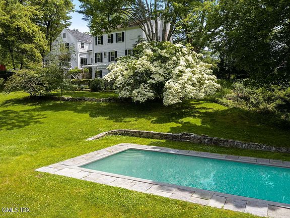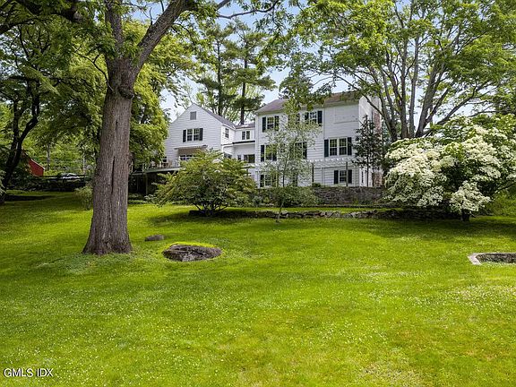 Extremely charming updated 1830 Colonial with original wide plank floor boards set on 3 private acres in a 1 acre zone with pool. Fab fun barn with tall stone FP and soaring ceilings - presently used as a spectacular office and amazing, large entertainment room - 1540 SF. Unique opportunity to own your own compound. Spacious, very attractive gourmet KIT w Brkfst Rm and mudroom opens to a large deck overlooking the exquisite property. LR and DRs with gorgeous floors and FPs and handsome Lib w built ins. Sep office and full bath. Main Dbl Brm & bath with FP, plus 4 other Dbl Bdrms, 2 baths and sep laundry room complete the second floor. There is a walkout finished playroom on the lower level. Back staircase, generator, many recent improvements. Close to GCDS, minutes to town and train.
