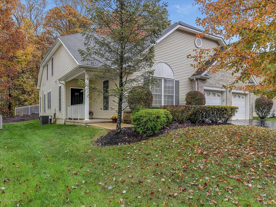 Move right in! Meticulous 3 bedroom 2 full and 2 half bath Mayfair model in desirable Rosemont Estates, a 55+ active adult community. Great location backing to the woods, cul de sac street and near the clubhouse. Gourmet kitchen includes stainless steel appliances, granite counter tops and extended breakfast bar. Vaulted ceiling in great room, wet bar and dramatic balcony. Furnace and A/C have been moved into an additional bath in the 3rd bedroom/bonus room. Hardwood floors, LED lights, Pull down stairs with flooring in attic. Extra storage. central vacuum. Community features a 16,000 sq ft clubhouse indoor/outdoor pool, kitchen, card room, tennis and more.