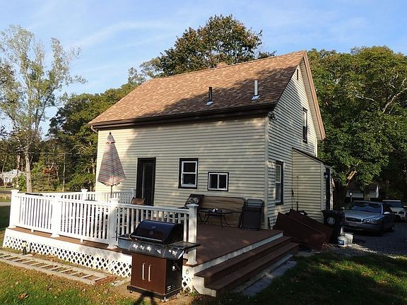 Charming colonial cottage featuring, double living room/dining room with gleaming pine flooring ,both baths have been remolded,some newer replacement windows, country kitchen with pantry and breakfast area, recent roof, blown in insulation, 2 zone heating, farmers porch, maintenance free 18x20 trek deck off the living room overlooking beautiful grounds. Easy access shopping and highways,