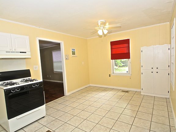 Cottage Home on 4 lots. 2 bedrooms but 3rd room could be used for a bedroom, office or sitting room. Hardwoods in the living room, tile in the kitchen, Kitchen and dining room combination. Central heat and air. Large fenced in yard. Great starter home or investment property. Close to the interstate . Sold AS IS