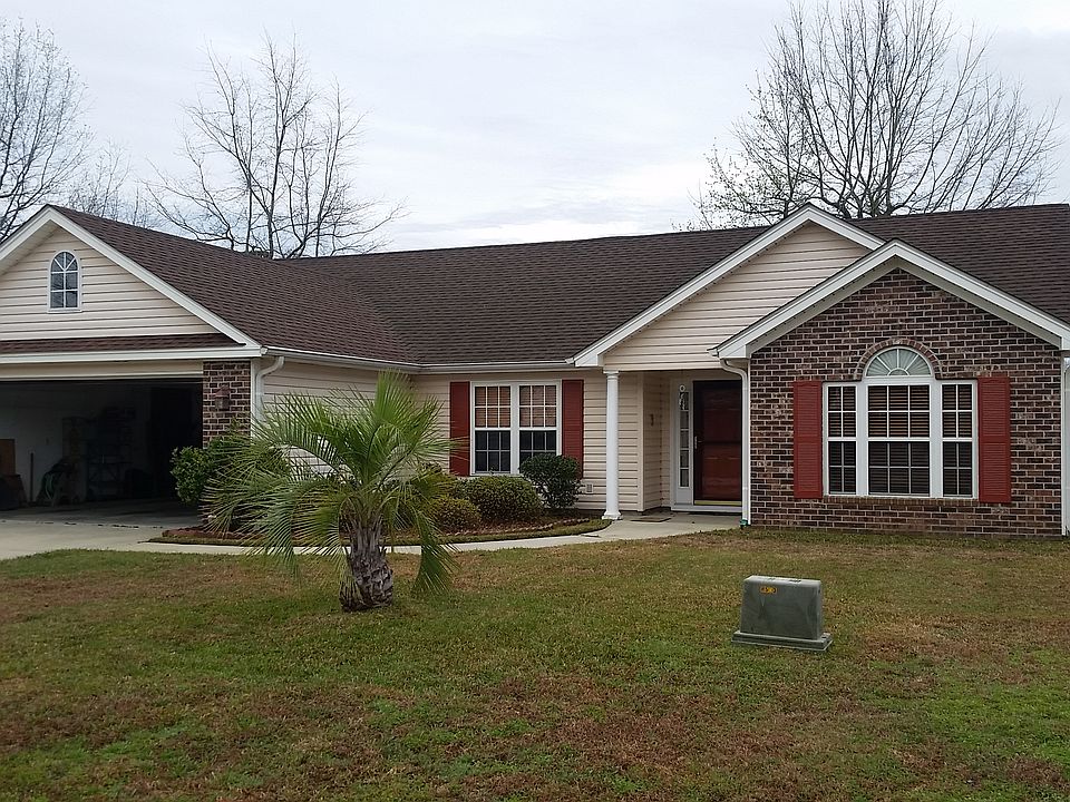 Please text for quick reply for showing and information. **AVAILABLE NOW** Ask about October rent incentive for a lease to start by November 1st. 3 bedroom, 2 bathroom one story home located in the desirable community of Palmetto Glen. Fresh paint! Kitchen features accented tile, granite countertops, stainless steel appliances. An eat in kitchen area, and a very spacious dining and living area. The master suite features a large bathroom and walk in closet. Split floor plan has two additional bedrooms and full bath. The flooring is hardwood, tile and LVP. No carpet! Large sunroom with tons of natural light and AC/heat. Enjoy use of the community pool. The home also offers a two car garage and patio overlooking the pond in the back. The Palmetto Glen community is centrally located giving you easy access to restaurants, entertainment, and a short 10 minute drive to the beach, Market Commons, or the airport! School Information: Lakewood Elementary, Socastee Middle School, Socastee High School *Tenant is responsible to verify school district* Will consider small dogs only. Rent includes use of community pool. NO smoking allowed.