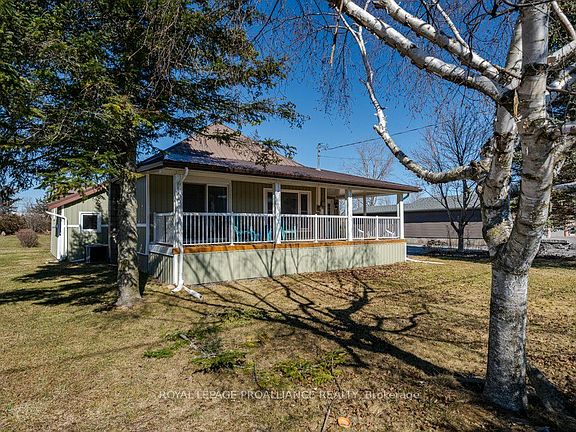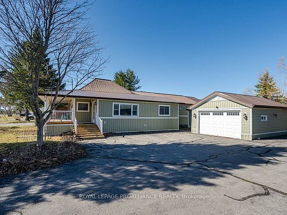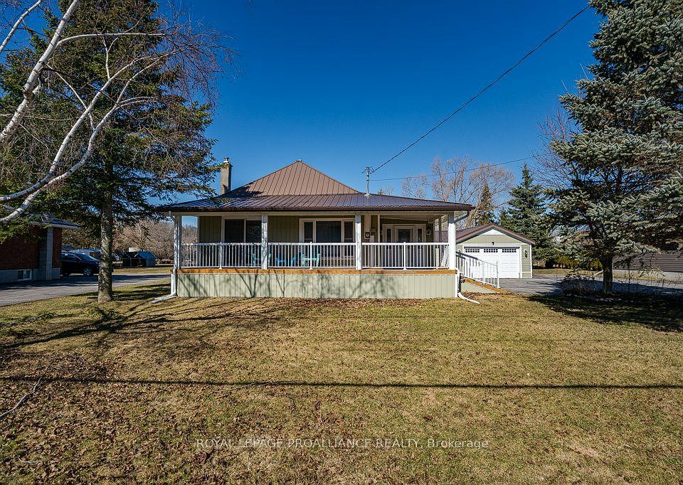Check out these views! This beautiful bungalow is located just south of Frankford situated across from the Trent River boasting beautiful water views right from your front porch! This unique property is situated on just under half an acre (0.44 acres) while offering municipal water and sewer. The interior is updated with newer tile & laminate flooring, forced air gas furnace (approx 2010), gas fireplace & central air. Enjoy a stunning open kitchen/living area with gas fireplace, maple cabinets to the ceiling, granite counters/island with seating. The patio door off the kitchen/living area showcases the rear covered deck where you can enjoy the oversized lot and backyard oasis. Primary Bedroom has sliding patio door overlooking the water & access to covered front porch. This beautiful bungalow also offers two other spacious bedrooms and a bonus room would make a great home office setup. Main bathroom is 3 piece; shower, tiled floor & laundry. Ensuite bathroom has sink & tub/shower. Other features include: crown moulding, marble floors in foyer and a virtually maintenance free metal roof on both home and garage. A handyman dream with a detached 1.5 car garage for all of your tinkering/workshop desires. Amply parking spaces available in the large driveway. Book your showing today!