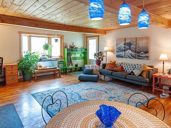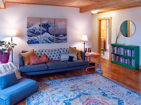 Sweet, snug ,1 bath 3 bedroom bungalow on a private 1/2 acre lot, within easy walking distance to the 87-acre Eldridge Wilderness Preserve, and only three minutes to IC and 5 minutes to downtown Ithaca. All the hard work has been done on this home! Enjoy the open layout concept, the beautiful hardwood floors, and the gorgeous Llenroc fireplace and sandstone wood stove to delight and keep you warm all winter. Updated kitchen with butcher block counters and contemporary cabinets. You choose whether to use the two-car carport or the under-house 1 car garage. Beautifully private backyard already has fencing in place to keep the chickens in, and is ringed by hardwoods that turn color in the fall. Fully-automated wood pellet fueled boiler burns efficiently and reduces your carbon footprint, w/electric backup for safety; UV filter on well. This is the affordable, well-located, home with delightful character and land that you have been waiting for.