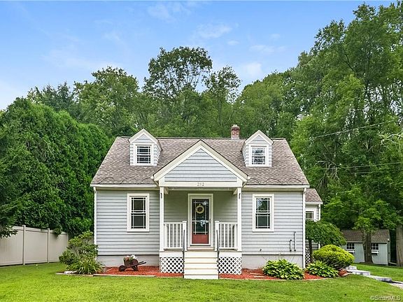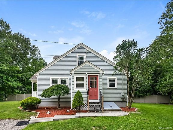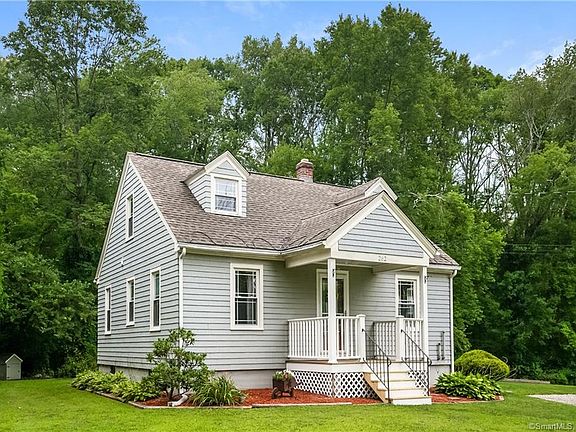 Adorable Cape Cod Set on a 1.7 Acre Lot! Youâll love the condition of this home from top to bottom with gleaming hardwood floors and freshly painted interior. The first floor features a spacious fully applianced kitchen with ample cabinet space and dining area, a bright living room with ceiling fan, 2 bedrooms and a full updated bath. The second floor features 2 smaller bedrooms with built-ins offer the option to be used as bedrooms, craft room or office space. Full basement has great potential for finishing and adding extra living space. Other great features include newer windows, central vac, a lovely front porch, and an oversize barn perfect as a garage but also ideal for extra storage space or a man's cave. Enjoy the privacy and beauty of the nicely landscaped yard with storage shed and privacy fence. This home is conveniently located to town center, golf courses and easy commute to major highways, casinos, and a short ride to CT shorelines!