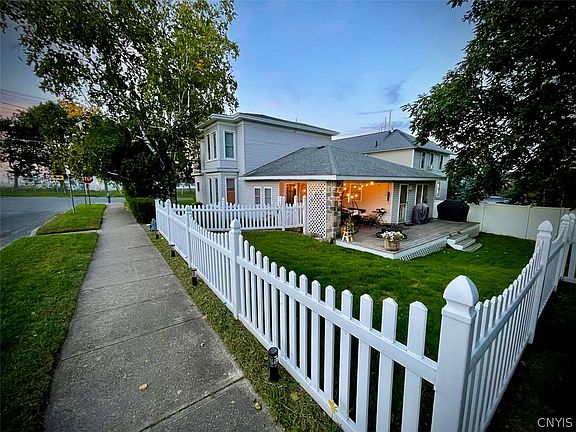 Charming corner colonial with attached 1-car garage, neatly fenced yard and a modern interior. Enjoy time outside relaxing at the covered deck, with handy access to your grilling area. The large kitchen and dining areas are open and inviting. Convenient mudroom and laundry is close the garage entrance. The heated front porch gives extra space for a home office or fitness area! The main floor full bath is complete with soaking tub, and large walk-in shower! Close to SUNY Oswego and a convenient drive to all things Oswego!
