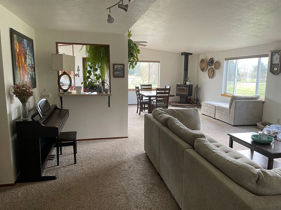 Welcome to peaceful country living on 2.6 acres with stunning panoramic Olympic Mountain views. This spacious 2 bedroom, 2 bathroom home offers nearly 1,700 sq ft of bright, comfortable living, surrounded by open fields, mature landscaping, and your very own fruit tree orchard.