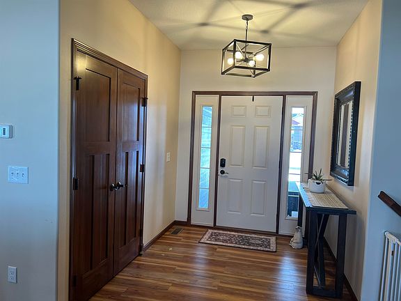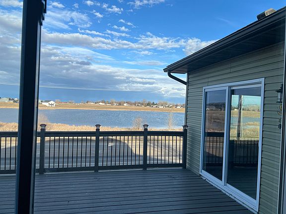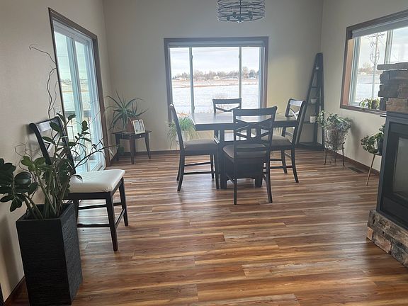 Welcome to this breathtaking home that boasts over 3800 square feet, graced with panoramic views of a tranquil pond and surrounded by lush greenery. The exterior harmoniously combines wood, stone, and vinyl siding, while the beautifully landscaped yard, adorned with towering maple trees, invites relaxation in a hammock on a warm summer day. Step inside to discover five spacious bedrooms, including a primary suite boasting a trayed ceiling, walk-in closet, and a lavish en-suite bathroom with dual sinks and a jetted tub. The kitchen delights with its quartz countertops with large undermount sink, soft close cabinets and newer appliances. The main level features newer lighting, paint, and flooring. Entertainment awaits in the media room, complete with tiered flooring, sound system, projector, and a 110” screen. Two fireplaces add warmth and charm to the living spaces, while the basement living room, with its preplanned plumbing, offers the versatility to add a mini-bar kitchen with sink and dishwasher. Practical amenities abound, including a three-stall garage with hot and cold running water, a floor drain, service door, and gas heat, along with an extra parking pad. The heated floor in the basement bath ensures comfort year-round, and the walk-out basement adds convenience.Additionally, a spacious main floor laundry room awaits, complete with a utility sink, enhancing the home's functionality and convenience. With its meticulous maintenance and one-owner status, this home epitomizes comfort, luxury, and practicality for discerning buyers. The pool table will convey with the sale. Sellers are licensed real estate agents in the state of North Dakota.