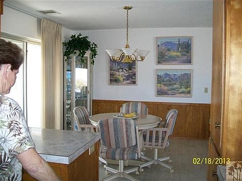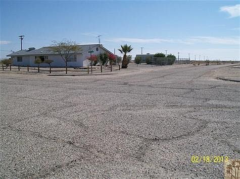 Home has lovely 2/2. A Mallard fully contained motor home that sleeps 6-8, with full hookups and disposal area, huge covered shelter/carport area for your guests is also available outside escrow. Has microwave, stove,refig, shower, toilet,queen bed, bunk beds and kitchen table unfolds for another sleeping area. Plenty of privacy away from main house, yet safe and completely gated.. two (2) double car garages + Sea Container for locking up your off road toys etc. Compound is gated with 3 RV gates and 3 passenger gates, all entrance doors have safety screens. Large screened in patio with wood fireplace...furnishings are available outside escrow. Pergo floors in d/r, carpet in bedrooms, 2 huge walk in closets and all appliances including w/d and extra refrig in garage. Plenty storage closets, windows have black out treatments and yard is fully sprinkled, with desert landscape for minimal care....new roof in 2006, every building painted outside approx 1 yr ago. One of a kind find. Brokered And Advertised By: Desert Realty Listing Agent: Kathleen K. Kolb