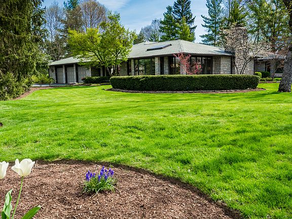 Wonderful Stone Ranch Nestled Into A Fabulously Landscaped .48 Acre Corner Lot In Desirable Canterbury! Vaulted Entry With Skylights And 1/2 Bath! Hardwood Floors Throughout! Beautiful Great/Game Rm 30' x 35' w/ Large Stone Fireplace, Built Ins, Closets, Bench Seating & A Wet Bar! Dining Rm Is Large & Expandable With Built ins! Living Room/Greeting Rm/Office Has A Fireplace! Kitchen Has Wolfe Gas Range, SubZero Refrigerator, Loads Of Cabinets & Granite Counters! Sun Rm & Dinette Adjoin The Kitchen And Access The Private Outdoor Living Space! Family Rm is Vaulted & Beautiful Fireplace! Master Retreat is 20' x 32', Vaulted Clg, Built Ins, Two Closets and Remodeled Master Bathroom! Two Large Bedrooms w/ On Suite Bathrooms! Nicely Finished LL! 3 HVAC's. Well for Irrigation. Large 3 car Garage