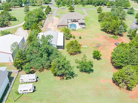 Spacious 2.5 Acres nestled back on a very private road, Very Peaceful Living! Charming home has 4 bed 3.5 bath with 2 living. New fabulous Iron double doors installed.Kitchen has Granite,Gas cooktop, double ovens, walk-in pantry and island. Both living areas are very spacious.Tons of natural light and storage throughout. Large utility with sink, fridge and storage. Backyard is perfect for entertaining or family get togethers. Plenty of space for everyone! 2 covered patios and beautiful pool. Pool has new pump. Concrete and coping newer as well. Circle Drive with additional parking. Out back there is a large 1058 SF Workshop with 2 726 SF covered parking down both sides of building. Perfect to park boat, trailers etc. Also has a 792 FT Guest Quarters with kitchen, living room, bedroom and bath. This house has a lot to offer. Great Bones just needs a little TLC. Deer Creek Schools. 3 Refrigerators and Washer Dryer to remain with property.