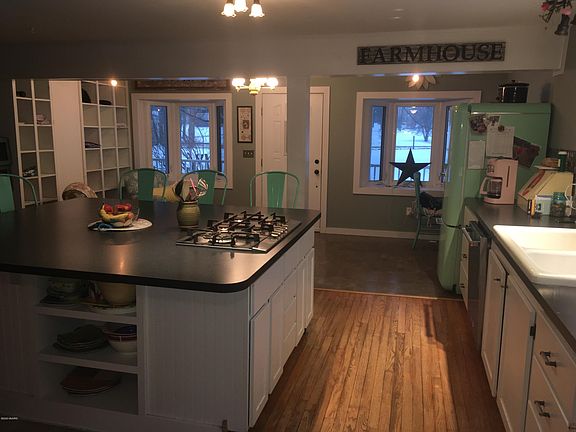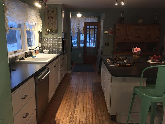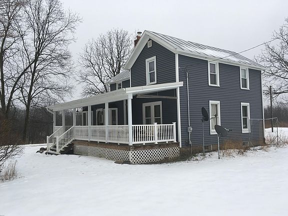 Charming remodeled farmhouse on 5 acres! Surrounded by woods and wildlife, this 3 bedroom features two full baths, spacious kitchen with built in appliances and large island with plenty of seating and storage, hardwood floors and new carpet. House sits nicely off the road and the yard has mature hard maples and fruit trees. Enjoy the quiet and wildlife from the covered front porch. Lots of space for an outbuilding and animals. Many updates to the home including newer septic tanks. Immediate occupancy!