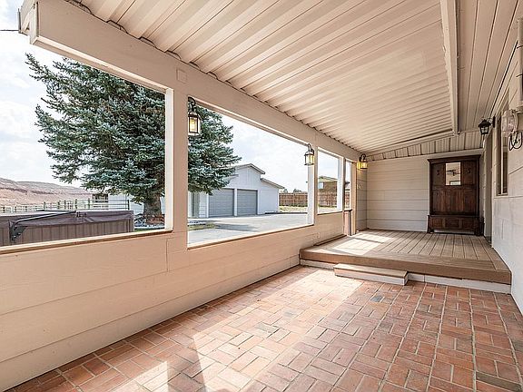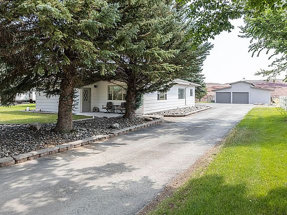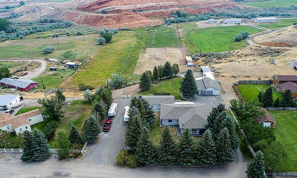This is an absolute one of a kind Cody property. It is 5 minutes to town and you can have your horses. Surrounded by red bluffs and iconic Cedar and Rattlesnake Mountains. It truly has the best of both worlds, town and country. The 3 bedroom 2.5 bath has been remodeled top to bottom with a mid century modern feel completely unique for the area. The home has a large open floor plan with gallery sized hallways. The 2 separate living rooms make it easy to space out in this gorgeous home. The 9 acres is perfect for horses or just to have your own space. Sitting on the patio with the red bluffs is the perfect way to relax. The property has a 4 car garage and a barn with plenty of storage for horses or machines. Sprinkler system for the whole property with a year round creek flowing through it as well. Irrigated pasture, city water and sewer, mature trees, at the end of the road for amazing privacy. Buyers are welcome to bring their agents!