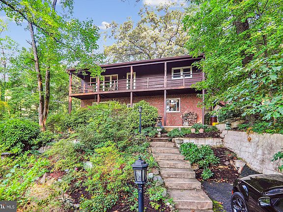 Just 1/2 mile from the University of Maryland, this Chalet in the Trees has a private setting facing the Northwest Branch Park that is hard to find in such a close location on a 26,035 square foot. You will enjoy the roomy front porch that's hidden and private and the upper-level full-width deck that lifts you into the trees. Watch the leaves change year-long with the southeast-facing view and enjoy the strong sunlight in the depths of winter from your treed bluff. A unique floorplan offers a potential in-law suite on the entrance level with a private side entrance and private bathroom. A spacious entrance hall leads to a Family room with a wood-burning fireplace on the other side with knotty pine walls reflecting the home's 1956 origin. Your 50s and 60s furniture will feel very at home here. The large storage/furnace/laundry room has two side rooms for added storage and one has a window and could be a great private office. Up a level the living room and the whole level have gleaming oak hardwood floors and an entrance to the upper level full-width deck - here enjoy your book in the afternoon light, feel the breeze, and enjoy the birdsong. The wood-burning fireplace is a great asset for cozying around in the holidays. The winter snowfalling will be a delight to watch here. The large windows are mostly Thompson Creek with warranties and flood your home with light. The kitchen is a superb country kitchen with lots of table space, stainless appliances, and lots of quartz countertop space. The cabinets look original and add to the 50's charm. This home has been gracefully updated without destroying its period charm. There are 3 good-sized bedrooms here and a full bathroom with a tub shower. All have shining hardwood floors. There's a whole house attic fan that saves on using the CAC when it quickly sucks in the cool evening air. Custom blinds surround the large windows and will convey. The roof is just 2 years old and a good candidate for solar panels. The gutter guard system and downspouts are also recent. In the rear is a private fully fenced yard and brick patio ready for entertaining; an oasis among the trees." Stroll into the nearby Northwest Branch Park with miles of trails that take you in 10 minutes to Adelphi Mill and the Fall Line in the creek just beyond. The Purple Line is coming late 27 with a station around 1/2 mile away at the University of Maryland West Entrance. There's parking for 6 cars off the road. The terraced garden is full of year-round surprises with a new bloom and greenery for every season. You are a few minute's drive to the Beltway and I-95 and it's an easy commute into Washington, D.C., and surrounding locations. The Green and Red metro lines are also close by. This is a hard-to-find and unique home that is a joy to visit and live in. You'll marvel at watching the seasons pass with the trees all around and the warm winter views of the low sun - it's a step back in time but with the modern conveniences today's buyers demand. Also Open House on Sunday 8/18 2-4 pm