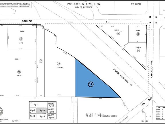 This sale comprises of two parcels: 210-140-014 (1.61 Acres or 70,131 SF) and 210-150-026 (2.34 Acres or 101,930 SF), and the total area is 3.95 Acres or 172,061 SF, or $14.53/SF. These two parcels are located in the Industrial Zone (I) in the City of Riverside. They provide an excellent development opportunity. The Floor-Area-Ratio is 60%. The permitted developments include: Aircraft Charter Services, Aircraft Parts, Supplies, Merchandise and Equipment Shops, Brewery, Microbrewery and Winery manufacturing and wholesale only. Heliport or Helistop (conditional use), Laboratories - Research, Lumber Yard and Building Materials - Wholesale, Manufacturing (Indoors), Medical Services - Clinic, Medical/Dental Offices, Laboratory, Urgent/Express Care, and Optometrist (Minor Conditional Use MC), Offices (Administrative, Business, Executive and Professional, but not Medical or Dental), Outdoor Storage Yard - Primary Use (P/MC), Publishing and Printing, Recycling Center - Paper, Glass, Plastic, Aluminum and Nonferrous Metals (C), Recycling Center - Solid Waste Transfer Stations and Material Recovery Facilities (C), Showroom, Truck Terminal, Wireless Telecommunication Facilities and Related Support Structures (C).