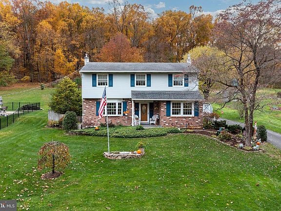 Welcome to this 4 bedroom 2 1/2 bath Colonial in New Hanover Township situated on 1.05 Acres. This property is meticulously maintained and boasts a beautifully landscaped backyard with outdoor lighting. This home features lots of improvements and upgrades. Formal living room and dining room with bay window in living room. Hardwood floors throughout except the family room. Entertain in your family room and enjoy the gas fireplace. First floor laundry. Updated kitchen includes Corian counters, Quartz island, wine rack, Porcelain flooring and Hickory cabinets. All new 2021 appliances, that include GE oven with air fryer and range and microwave, refrigerator, KitchenAid dishwasher. Replacement Anderson/ Simonton windows. 3 zones for heating. Sunroom in the rear of the home overlooking a Trex deck and courtyard and potting area. Entertain on your covered porch with includes a grill and fire pit area. Detached 2 car garage. and shed. Connection for portable house generator. Wireless security system. Schedule your showing today!!!